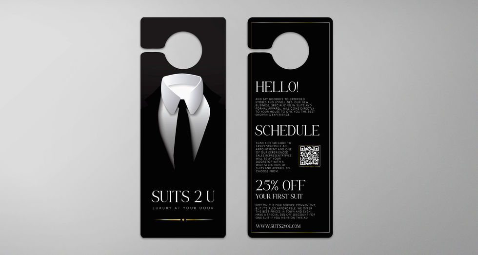 Bringing the sophistication of tailored suits to your doorstep, Suits 2 U epitomizes the future of personalized fashion experiences. Through branding and marketing materials, we have curated a distinctive brand identity that embodies convenience and style.